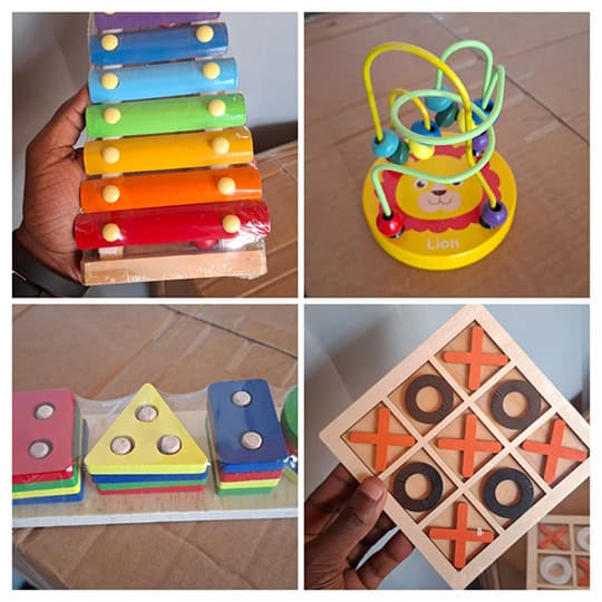 Spark curiosity, creativity, and early learning with this all-in-one Montessori Educational Toy set, thoughtfully designed to support your child’s development through hands-on play. This premium collection of Kids Toys includes four engaging wooden activities: a Kids Wooden Maze Beads toy, Kids XO Board Game, Kids Wooden Shape Matching Puzzle, and a Kids Wooden Xylophone Piano, each crafted to encourage learning while having fun.